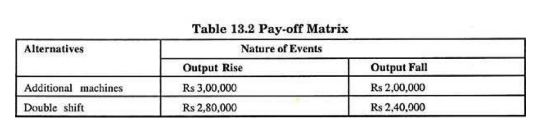 Since the pay-off from introducing a double shift is higher, it may be selected. Though, the decision tree does not provide a solution to the decision-maker, it helps in decision-making by showing the alternatives available and their probabilities.
