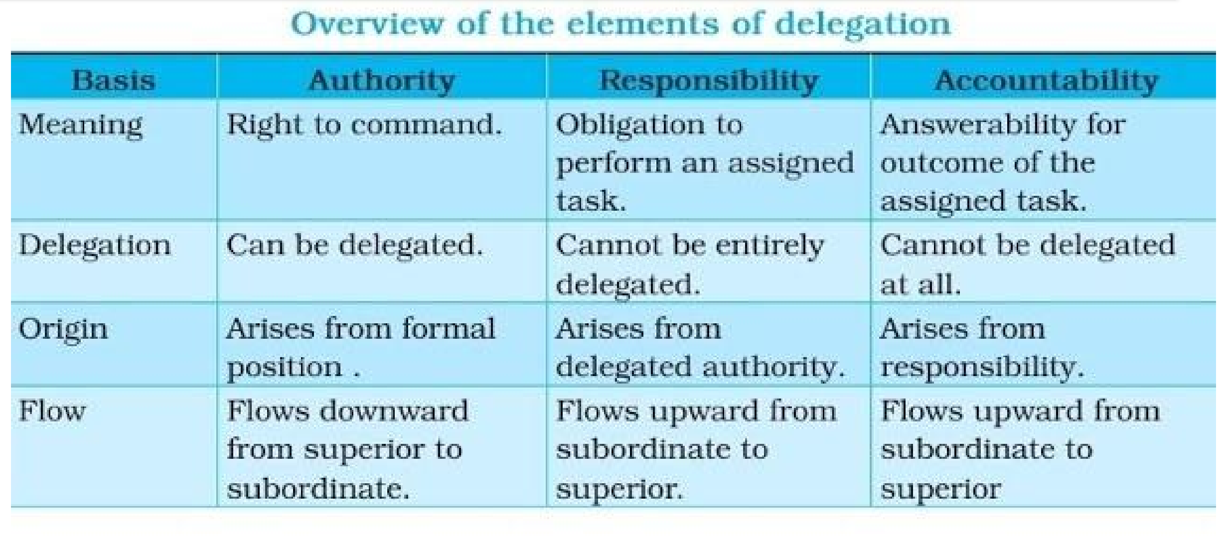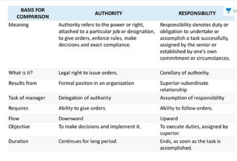 Authority always flows from top to bottom. It explains how a superior gets work done from his subordinate by clearly explaining what is expected of him and how he should go about it. Authority should be accompanied with an equal amount of responsibility.