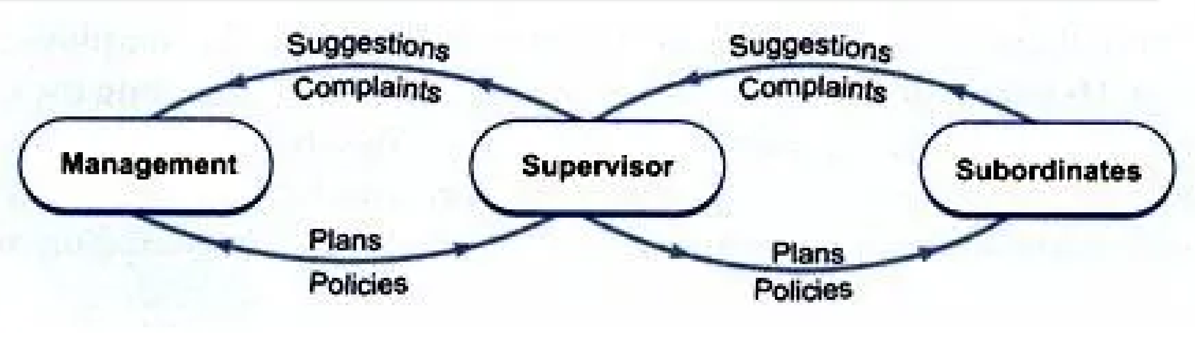 Supervisor plays the role of linking pin as he communicates the plans, policies, decisions and strategies of management to subordinates and complaints, grievances and suggestions of subordinates to management.